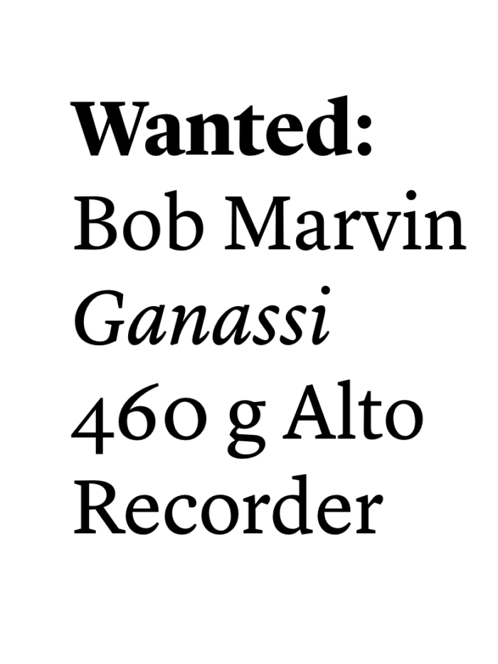 Wanted — Bob Marvin Ganassi-type 460 g Alto Recorder