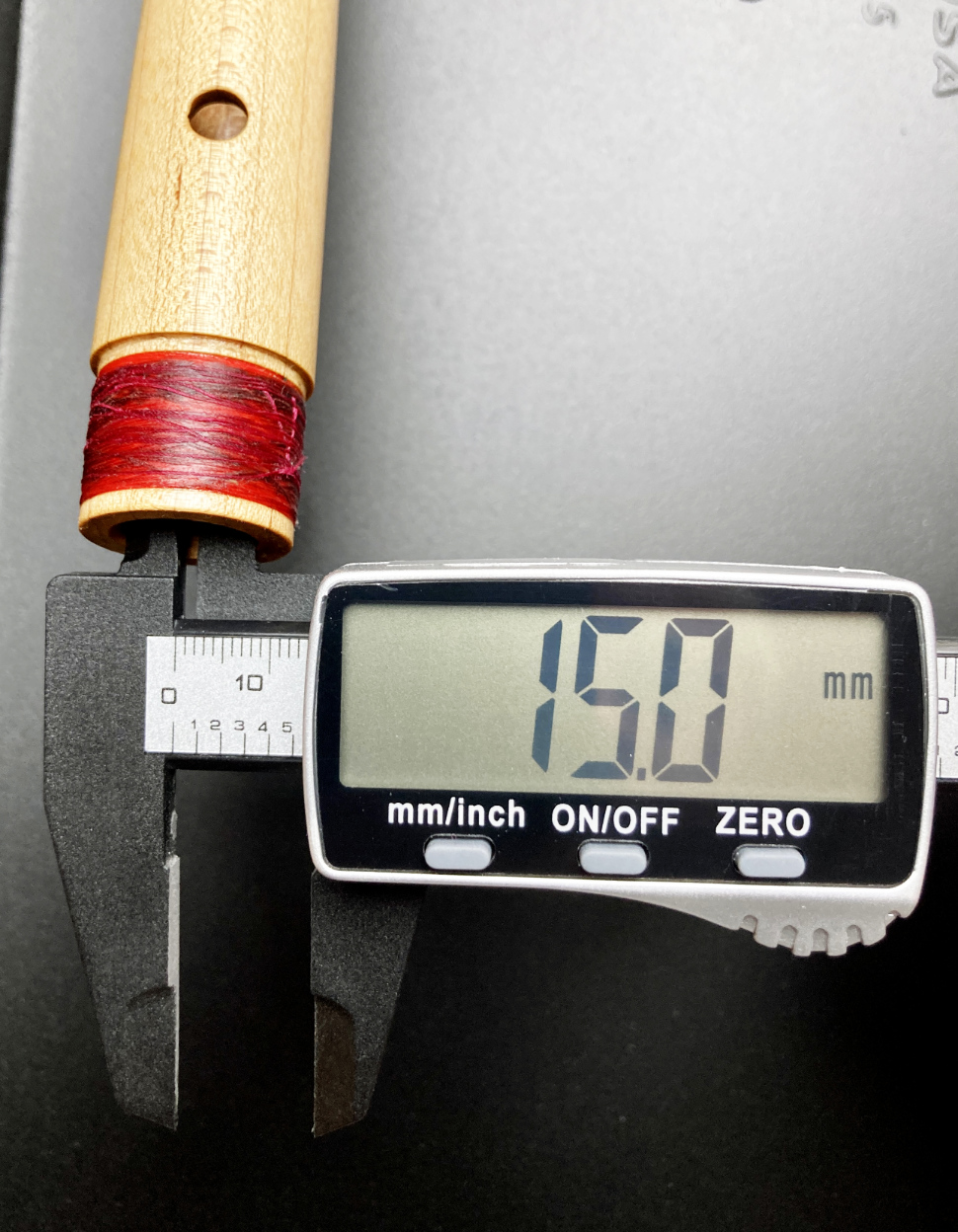 - Bore diameter (important): To ensure compatibility with my instrument, the bore diameter on the upper end of your instrument must match mine. The internal bore measures approximately 15 millimeters, and the external diameter is about 22 millimeters (see photos for reference).