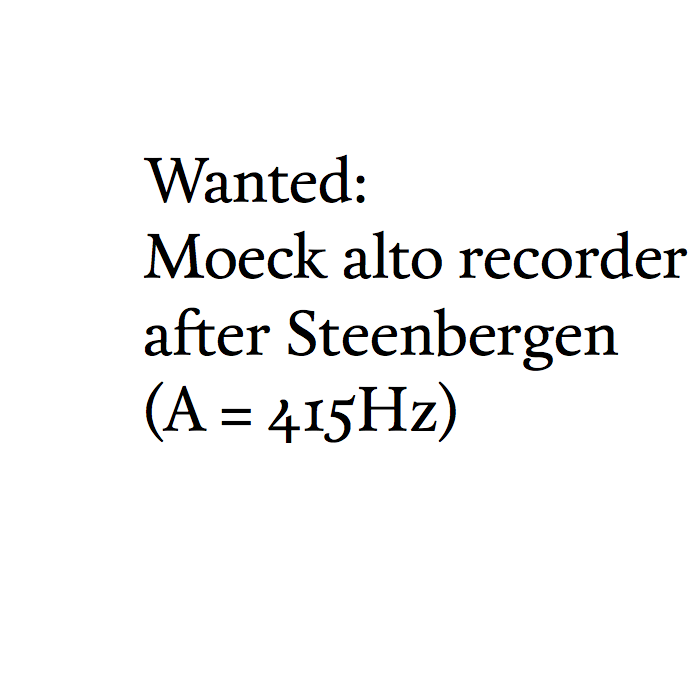 Wanted: Steenbergen Moeck alto (A = 415Hz) There’s a professional player who is interested in getting this particular model. If you’d like to sell yours, please contact them: