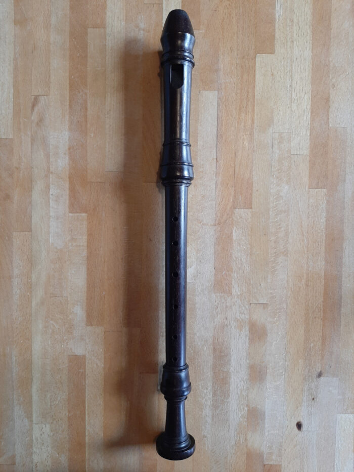 Click an image to enlarge it: Alto Recorder by Martin Kehr for Peter Harlan Model: Original design, no copy Pitch: A = 440 Hz Wood: dark rosewood? Built in: 1950s, probably earlier Ships from: Germany Price: 150 € Current state: Very dark rosewood?, single holes, […]