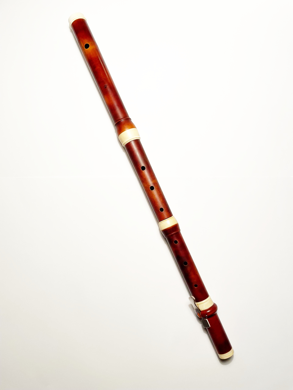 3000SALE! 2500 € - Current state: Traverso after Jacob Denner. Boxwood (c. 300 yrs. old) and fossil mammuth ivory (with certificate), two bodies in pitch 415/392, silver key. Excellent condition, well maintained.