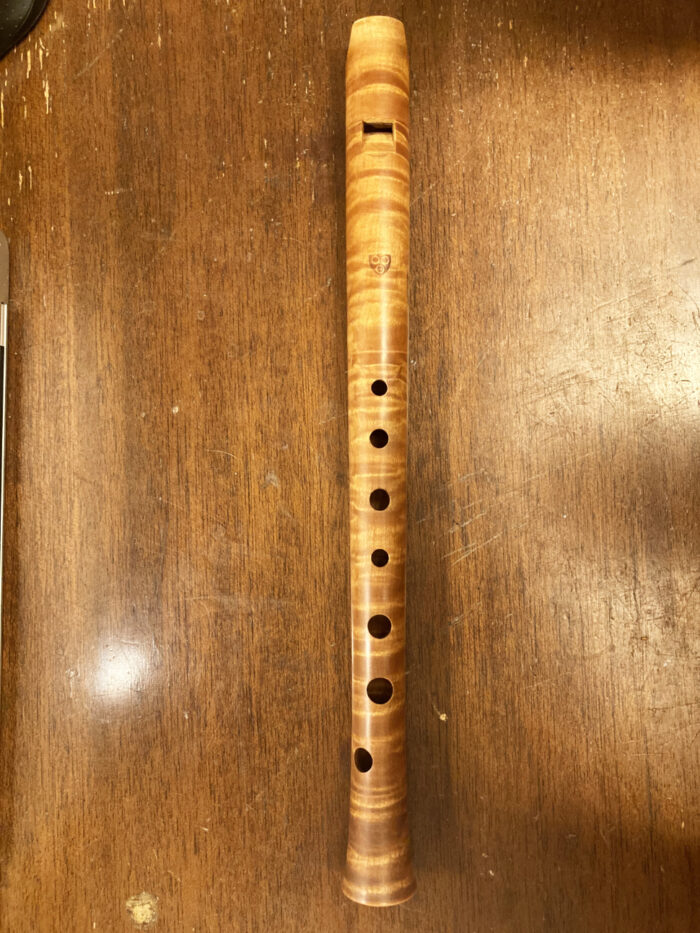 Click an image to enlarge it: Ganassi-type Soprano Recorder by Von Huene Model: Ganassi-type Pitch: A = 440 Hz Wood: flame ‘curly’ maple Built in: ~2000 Ships from: United States Price: $1000 USD Current state: One-piece design for tonal strength, outstanding flame ‘curly’ maple – […]
